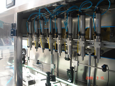 迅捷機(jī)械設(shè)備公司技術(shù)研發(fā)人員經(jīng)多次反復(fù)試驗,最終不負(fù)眾望,研發(fā)出一種新型升級版液體灌裝機(jī)的負(fù)壓灌裝頭,該負(fù)壓灌裝頭是在原負(fù)壓灌裝頭的基礎(chǔ)上,在灌裝管道內(nèi)設(shè)置了一套活動閥芯裝置,使液體灌裝過程中的滴漏現(xiàn)象大為減少;另外,被灌裝容器內(nèi)的液面高度可以保持一致,并且可以根據(jù)需要調(diào)節(jié)被灌裝容器內(nèi)的液面高度。